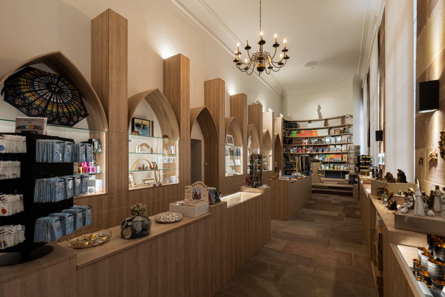 Transformé en espace de vente, après avoir été dédié aux réunions et aux moments conviviaux, ce lieu propose divers objets à caractère religieux, des crèches, des sculptures, des souvenirs de la Cathédrale, des cadeaux, soit un peu plus de 800 produits au total.